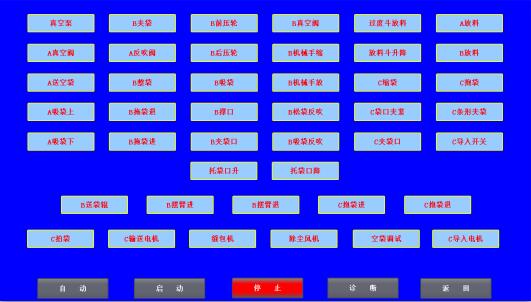 運行畫面顯示設(shè)備示意圖、操作按鈕、運行指示燈及相關(guān)報警信息等。